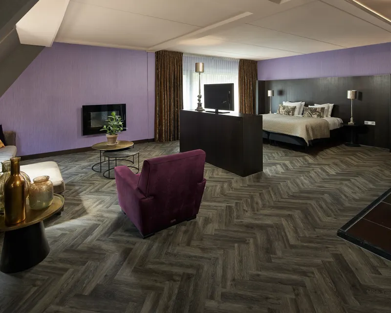 Spending the night in our Glamour Loft (71m2) guarantees a relaxing stay full of luxury! You will be welcomed with a bottle of bubbles in the luxurious and attractively decorated loft. The loft is equipped with a luxurious double bed, climate control, refrigerator, telephone, flat screen and safe. The spacious, comfortable sitting area has a cozy decorative stove in which to take a seat. The large, open bathroom has a whirlpool tub and lighted ceiling, double sink and separate toilet. You can use bathrobes and slippers provided in the room.