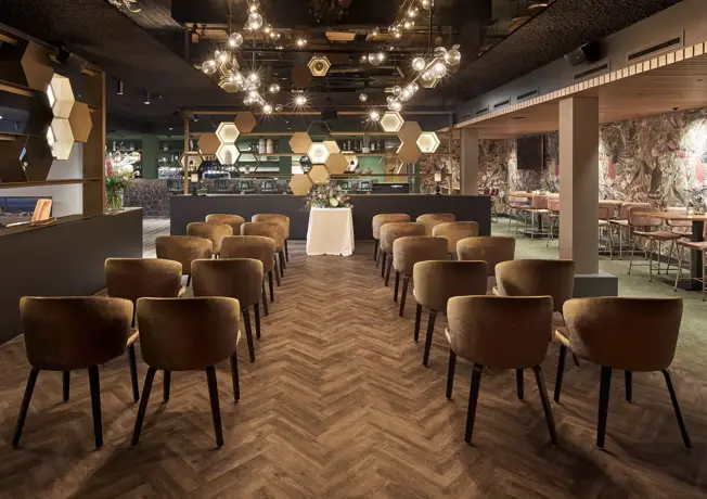 Onze stijlvolle hotelbar, gelegen in het sfeervolle souterrain van ons hotel, biedt de perfecte gelegenheid voor besloten feesten en partijen. Met een warme en intieme ambiance. De bar is voorzien van moderne faciliteiten en kan worden aangepast aan uw specifieke wensen. Of het nu gaat om een verjaardagsfeest, een bedrijfsborrel, of een andere speciale gelegenheid.