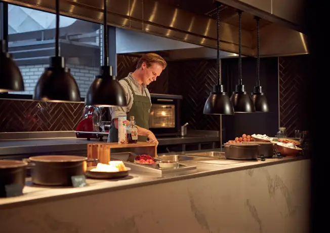 Geniet van smaakvolle pauzes tijdens uw zakelijke bijeenkomst. Van uitgebreide lunches tot borrels en diners: onze culinaire opties zijn perfect afgestemd op uw vergaderarrangement.
